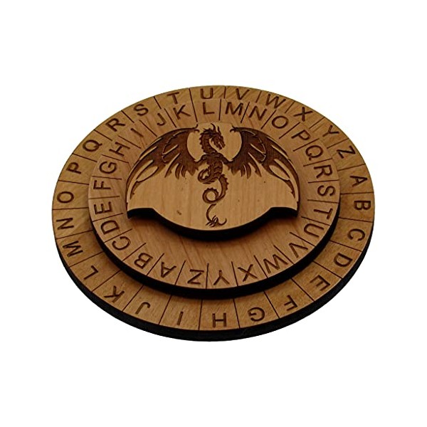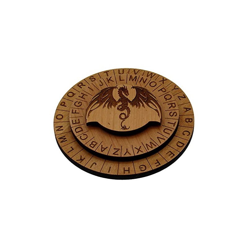 • Made in the USA - The Dragon Cipher Wheel measures 4.4" in diameter, about .75" in height, with laser engraved letters on alder mdf. Each one is made in our Spring Hill FL shop.