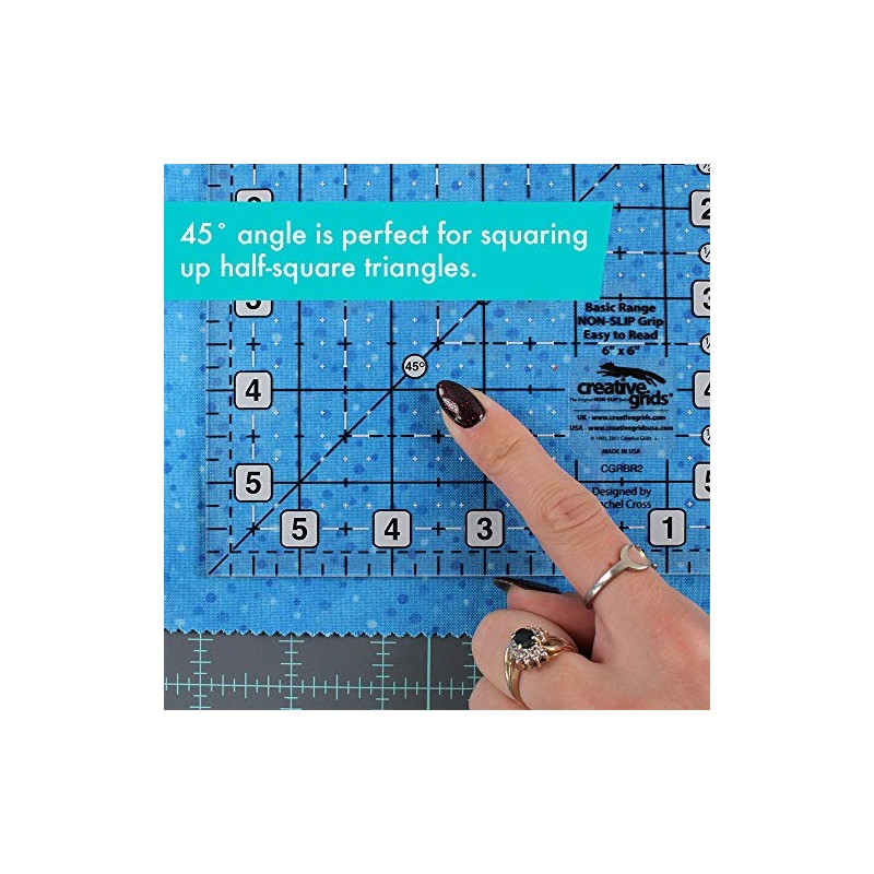 - The 45 degree angle makes this ruler the perfect choice for squaring up half-square triangles in whole and half inch increments.
