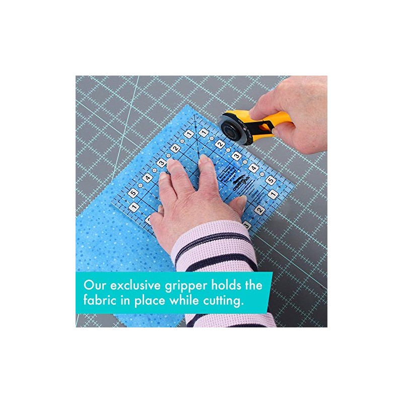 - The ruler slides easily over the fabric until pressure is applied. Then, our exclusive gripper holds the fabric in place while cutting, eliminating slipping and miss-cuts!