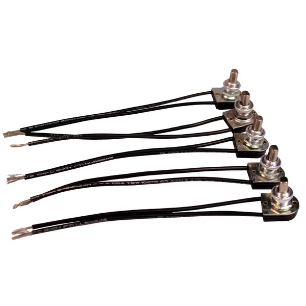 Creative Hobbies 5 Pack of Metal Push Button On/Off Switches, Single Circuit, 3A-120V, Metal Bushing with 6 Inch Wire Leads Stripped Ends