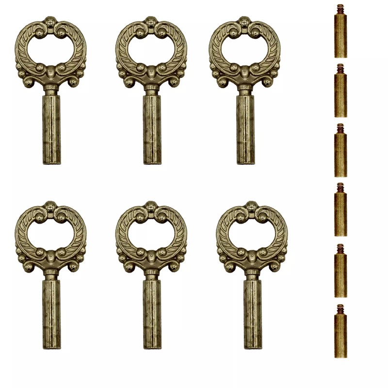 - Includes 6 Brass Key turn knobs and 6x 1/2" brass knob extenders