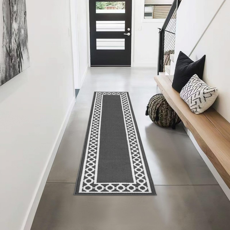 Creative Home Ideas β Tufted Runner - Christine Trellis Border Rug - Modern Home DΓ©cor - Washable Rug - Accent Carpet for Entryway & Hallway - Measures 26" x 96" - Dk Grey and White