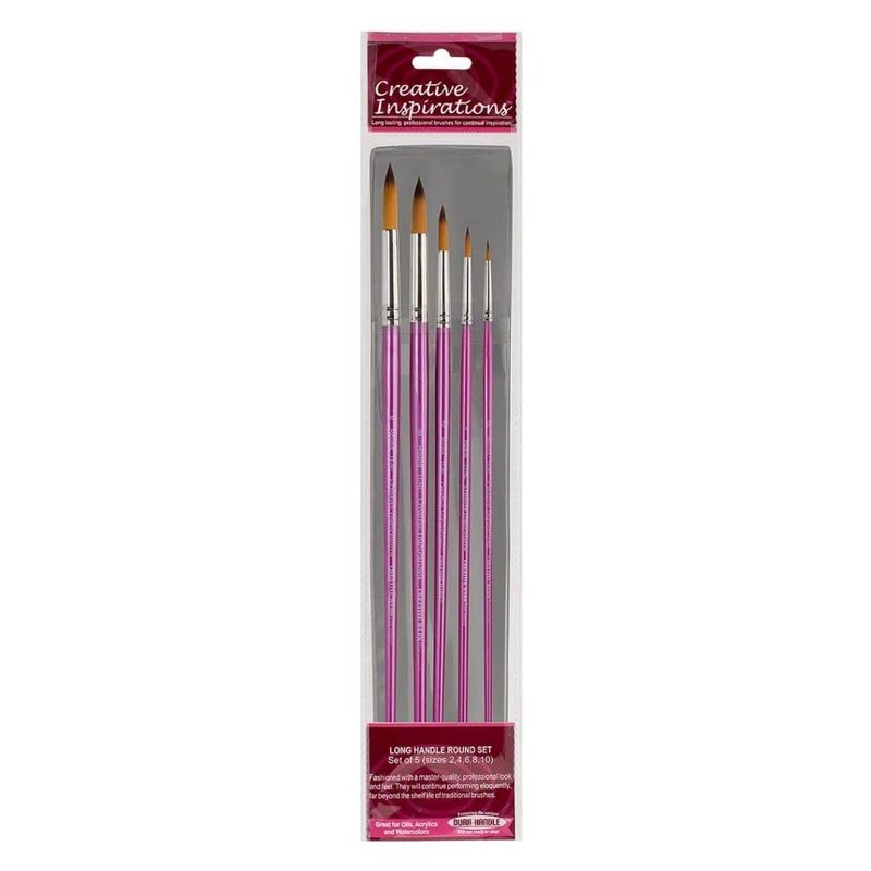 Creative Inspirations Dura-HandleArtist Paint Brushes Long Solid Resin Handle Resists Chips & Cracks - Round [Set of 5]