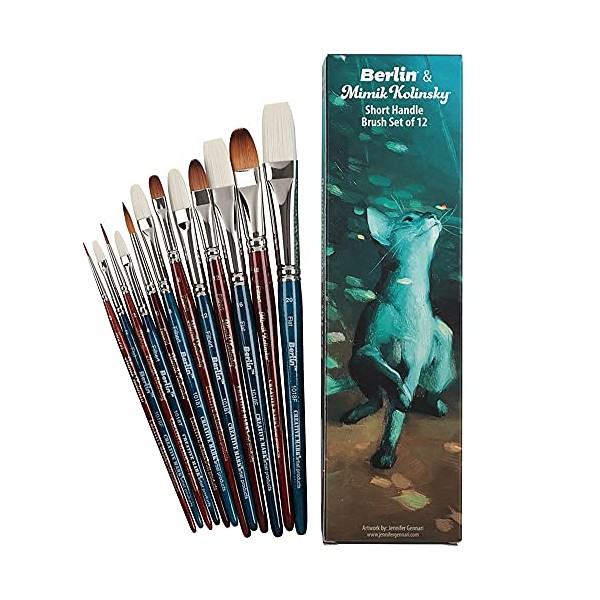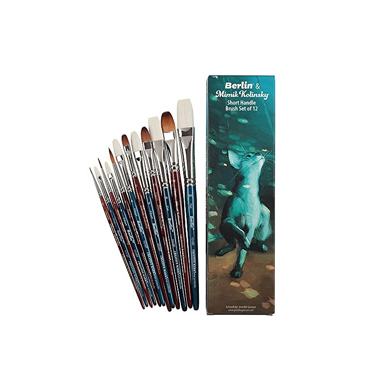 Creative Mark Mimik Kolinsky Synthetic Sable Short Handle Brushes and Sets - Elite Professional Brushes for Painting, Artists, Students, & More! - [Set of 12 - Set]