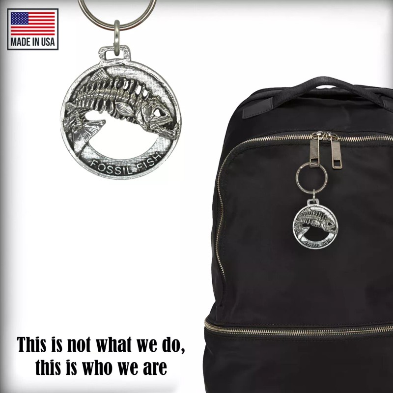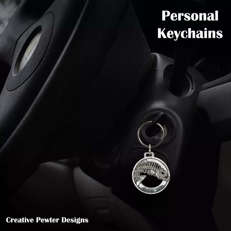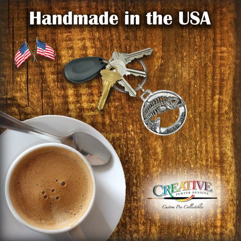 Creative Pewter Designs Fossil Fish Skeleton Leaping Keychain, F115KC, 2 Inches, Fishing, Gift, Metal