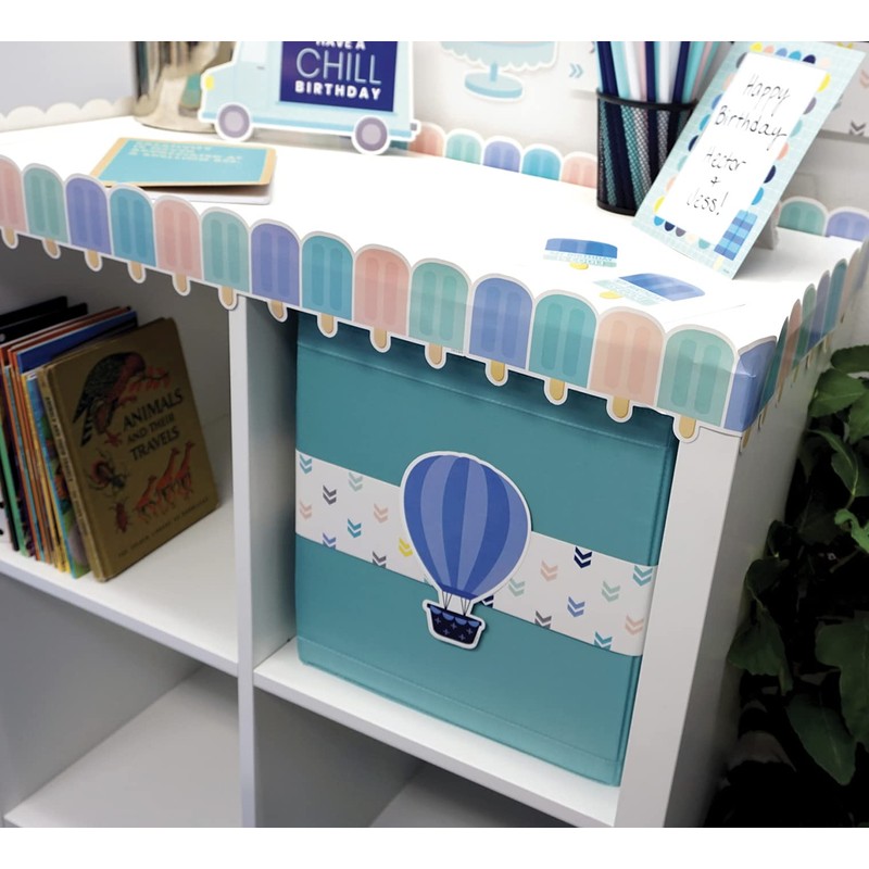 This 21-piece Calm & Cool Happy Birthday Mini Bulletin Board will make students feel special on their big day. The ice pop theme is complete with yummy ice pops for each month of the year, a birthday cake with an ice pop frosting design, an ice cream truck, a "Happy Birthday" pennant banner and more! - "Happy birthday" sign that features ice pops in a bucket (13" x 5.5") - 12 month ice pops (3.75" x 7.25") - photo frame (7.5" x 6") (holds 4" x 6" photo) - "Happy Birthday" pennant banner (35" x 1.75") - large pop ice accent (5.25" x 20.25") - ice cream truck (8.75" x 5.5") - ice cream truck sign (5.75" x 3") - tiered birthday cake (5.5" x 11.5")