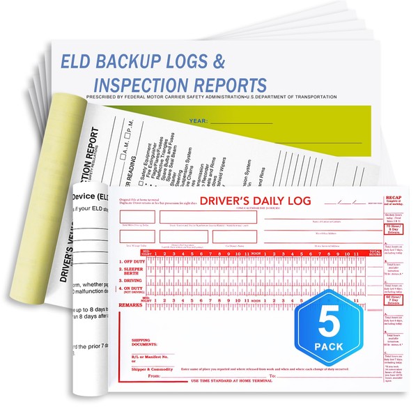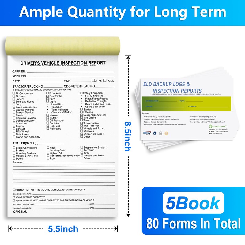 CreativeInk 5 Pack ELD Backup Driver Log Book with Detailed Drivers Vehicle Inspection Report & Daily Recap, 1 Pack 16 Sets of Forms, Log Books for Truck Drivers, Meet FMCSR Requirements, 5.5" x 8.5"