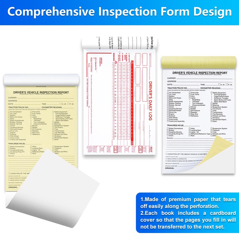 - The DOT drivers log book is made with premium, carbonless paper designed to withstand daily use. Whether you oversee a single vehicle or manage a large commercial fleet, this DVIR book is an indispensable tool for ensuring the safety and regulatory compliance of your operations.