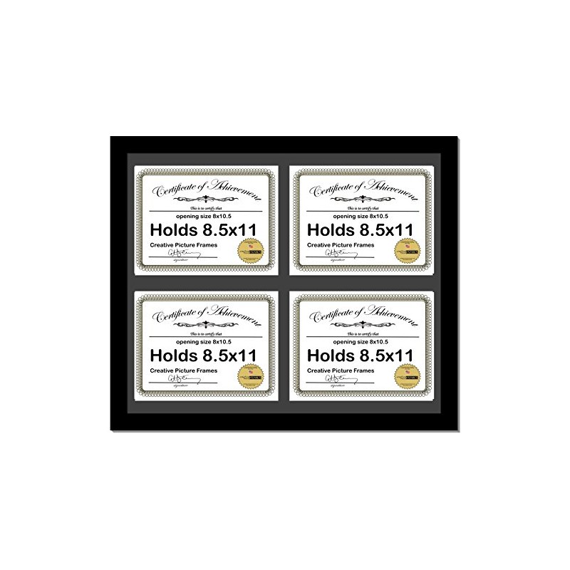 Creative Picture Frames 8511-20X24Bk-B Black Horizontal 8.5X11 Diploma Frame With 4 Opening Black Mat, Holds 4 8.5X11 Inch Documents With Wall Hanger