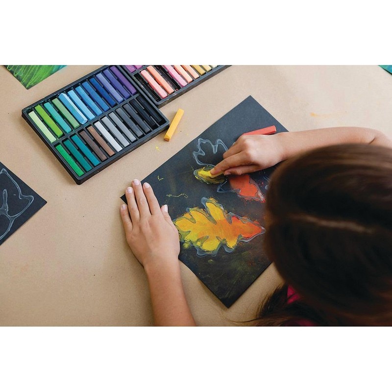 - Square-shaped, no roll pastels lay down smooth, richly pigmented color