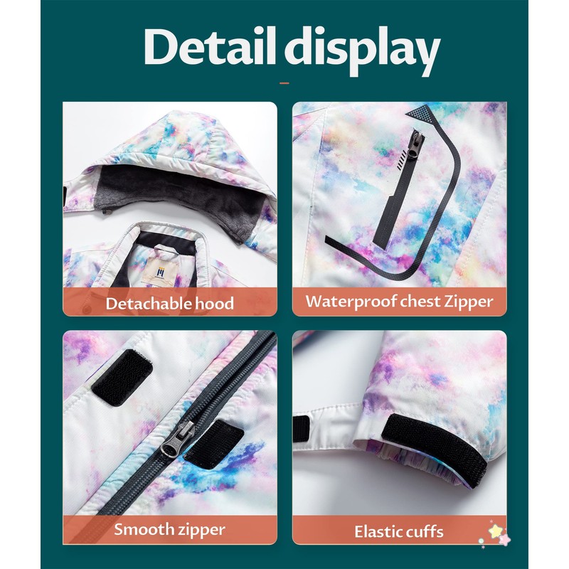 - ❄ Windproof--Girls snowboarding jacket with elastic drawcord detachable hooded and hem help seal in warmth. Adjustable hook-and-loop closure cuffs provide custom fit with your children gloves. High-quality SBS zipper is matched with windproof placket, perfectly locks the warmth.