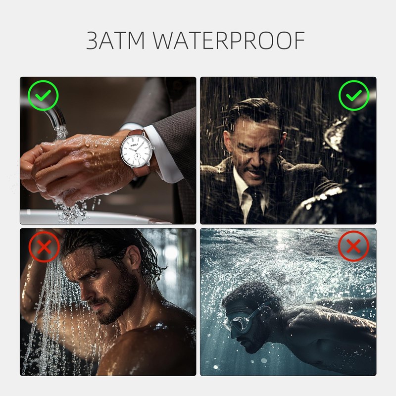 Credrio Watch Mens Watches Fashion Minimalist Ultra-Thin Watches for Men Waterproof Luminescent Hands Leather Strap