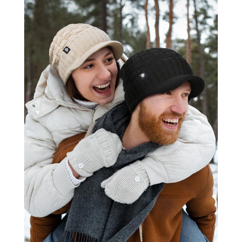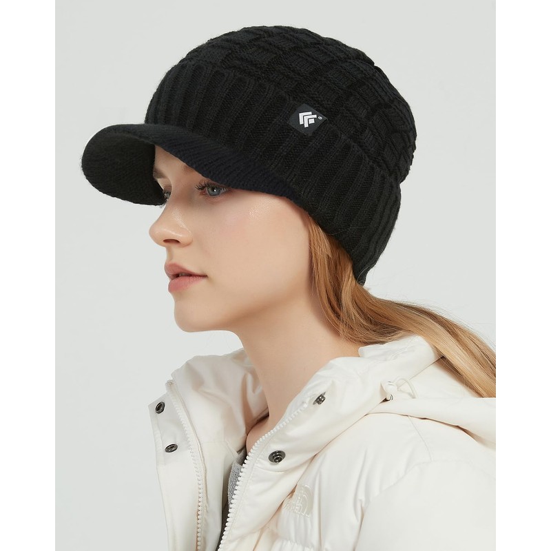 - Warm beanie with brim visor: the hat for men and women is made of high quality acrylic, which is warm and lightweight; the inner lining is 100% silky satin, smooth and skin-friendly. Featuring an all-over jacquard pattern, this knitted beanie hat with peak is so fashionable and warm for winter.