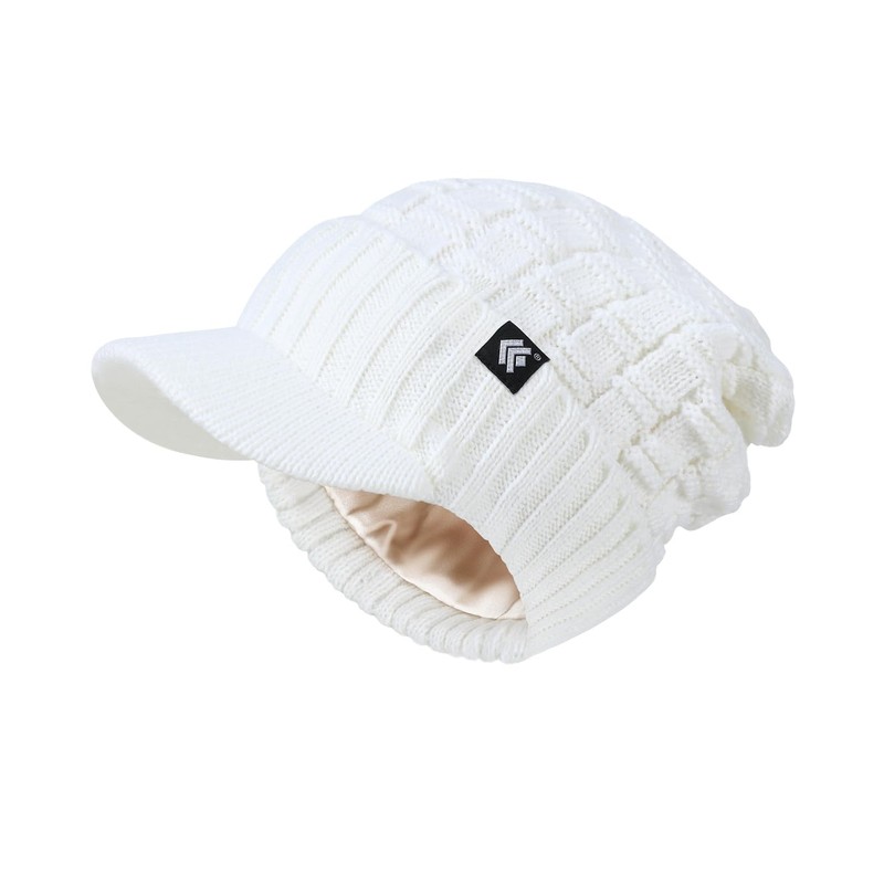 Creekstone Satin Lined Beanie for Women Men Satin Lined Winter Hats for Women Slouchy Beanies with Brim Visor (US, Alpha, One Size, White)