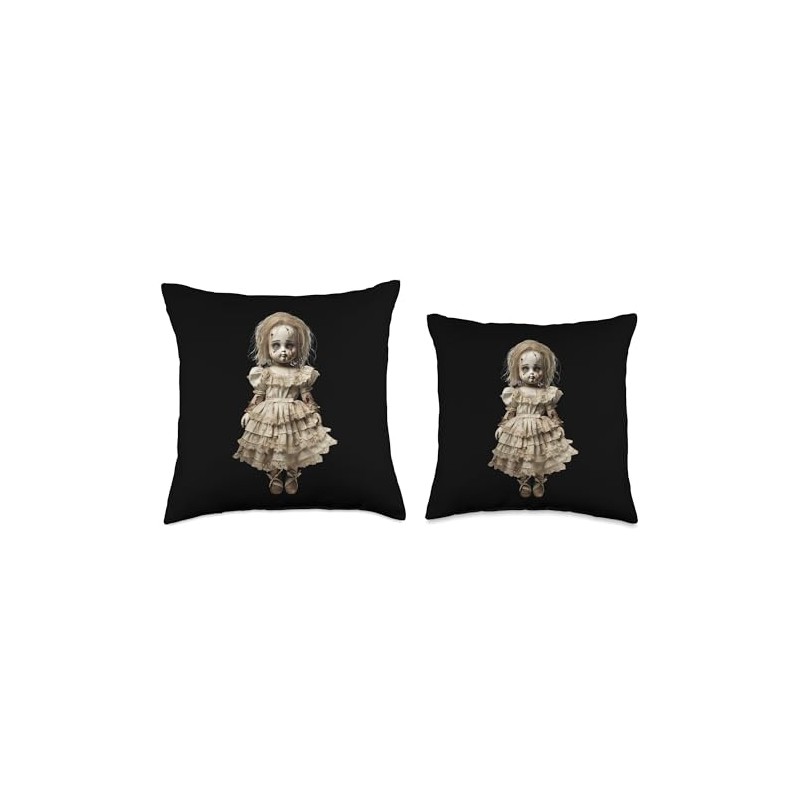 Creepy Antique Doll with Distressed Victorian Look Art Throw Pillow