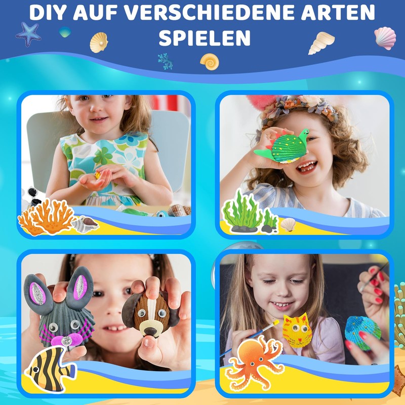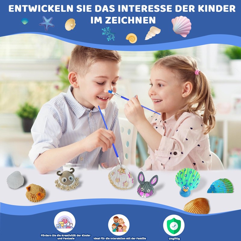 CREJOHY Shells Painting Children's Set, DIY Painting Arts and Crafts Set, Craft Sets, Painting Sets for Children, Shells for Crafts, Toy, Birthday Gifts, Craft Set, Children from 4 5 6 7 8 9 10 Years