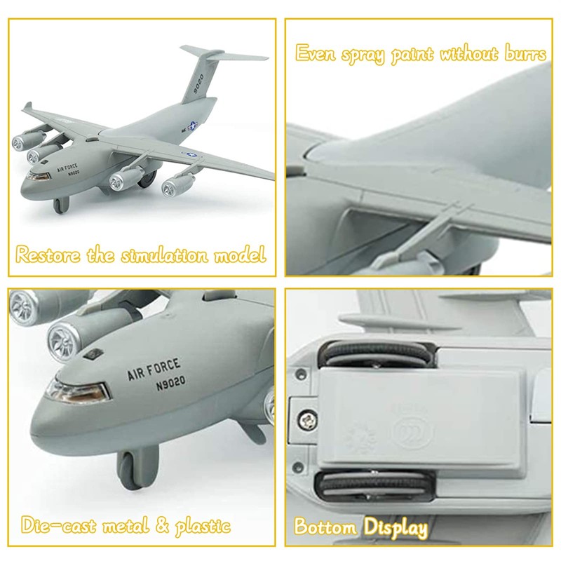 - ✈️【REALISTIC MODEL PLANE】The flashing lights and a surprising conversation from the US army would be active when pressing the swith button or the front wheel. What’s more, a model tank and 2 model jeeps inside the engine room must attract children’s attention.