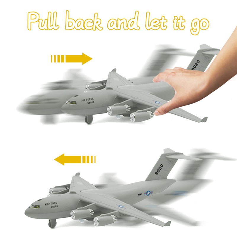 - ✈️【PULL BACK AIRCRAFT MODEL】The aircraft toy has super resilience performance, pressing the hand on the body and then pulling it back. After letting go, super power enables children to experience speed and passion. Light and sounds make airplane more beautiful and unique when pressing the switch button.
