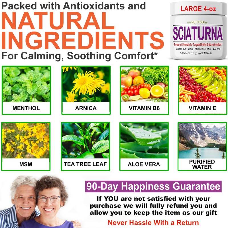 This is the SCIATURNA Sciatic Nerve Relief Cream YOU have been waiting for, take control of YOUR life today and get the help YOU deserve… START NOW… and join the 1000’s of happy customers who enjoy the Nuturna difference…