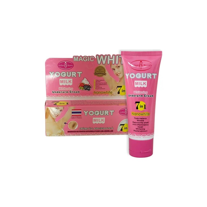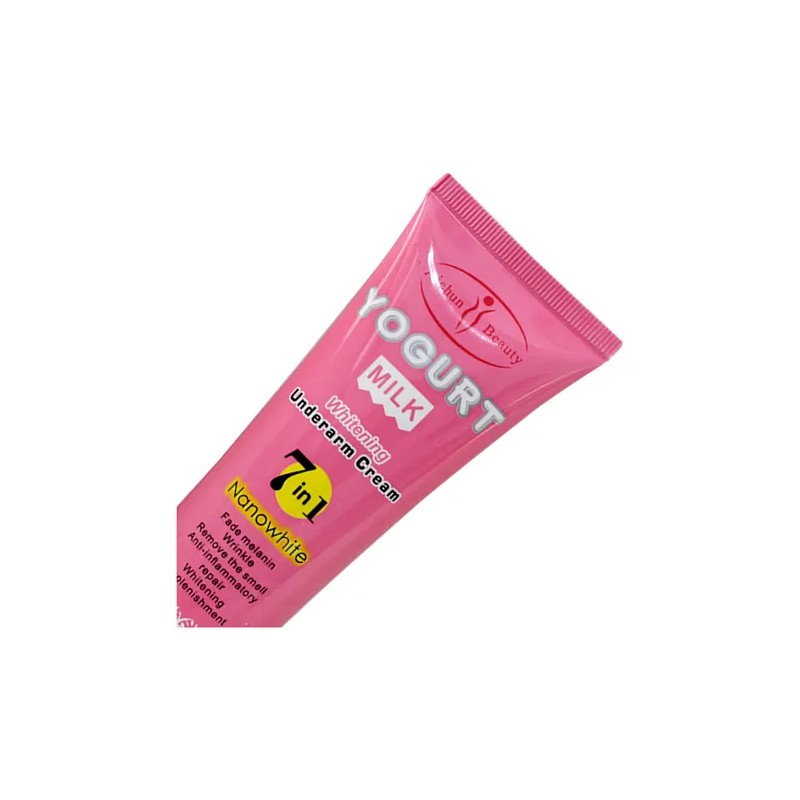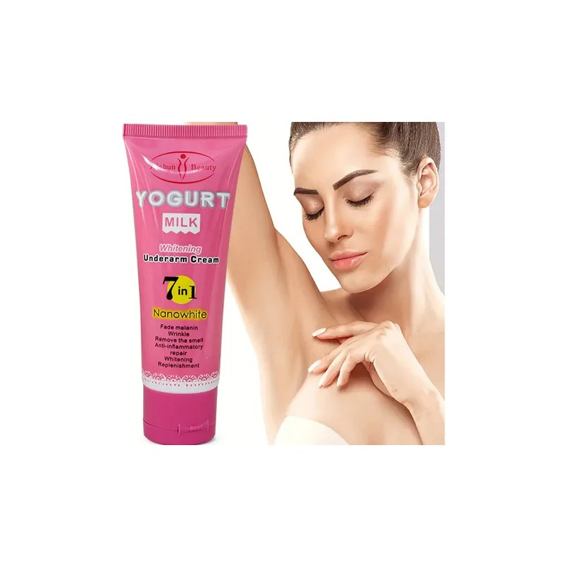 La crema Aichun Beauty Yogurt Milk es una solución para aclarar la piel de zonas como axilas, rodillas y áreas íntimas. Su fórmula a base de yogurt y leche no solo blanquea la piel, sino que también elimina olores y proporciona hidratación. Es ideal para reparar la piel y reducir la inflamación causada por la depilación.