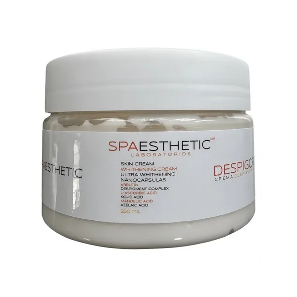 Incorpora esta crema en tu rutina diaria y descubre el poder de una piel más clara y rejuvenecida. Ideal para quienes buscan un tratamiento efectivo y seguro en el cuidado facial y corporal. Apuesta por Spaesthetic y transforma tu piel desde hoy.