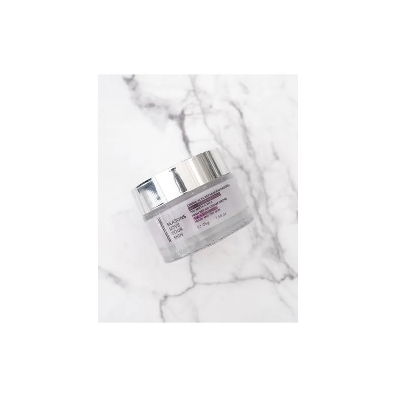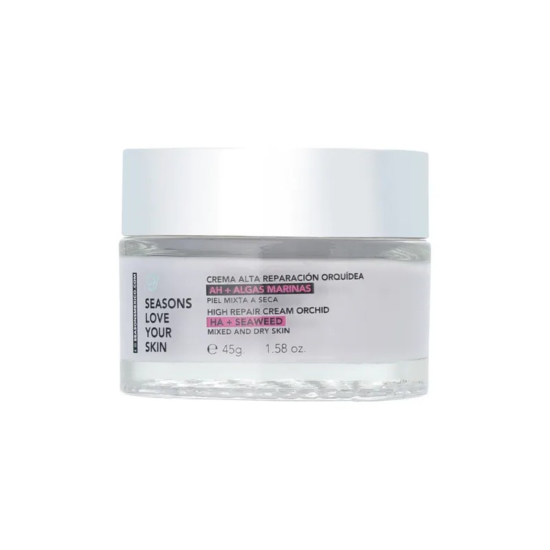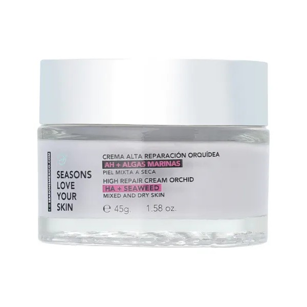 La Crema Alta Reparación con Orquídea AH y Algas Marinas está formulada especialmente para pieles normales a secas que requieren una restauración profunda, hidratación duradera y una defensa efectiva contra arrugas y líneas finas.