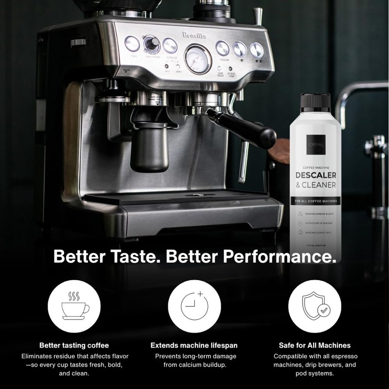 - REMOVES MINERAL BUILDUP – Hard water deposits can reduce water flow, lower brew temps, and leave your espresso tasting flat. Regular descaling improves machine performance and coffee quality.