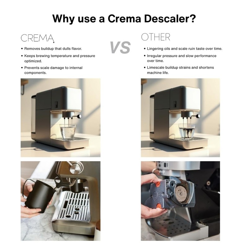 CREMA Coffee Products – Coffee Machine Descaler & Cleaner – Compatible with All Machines – 16 fl oz (4 Uses)