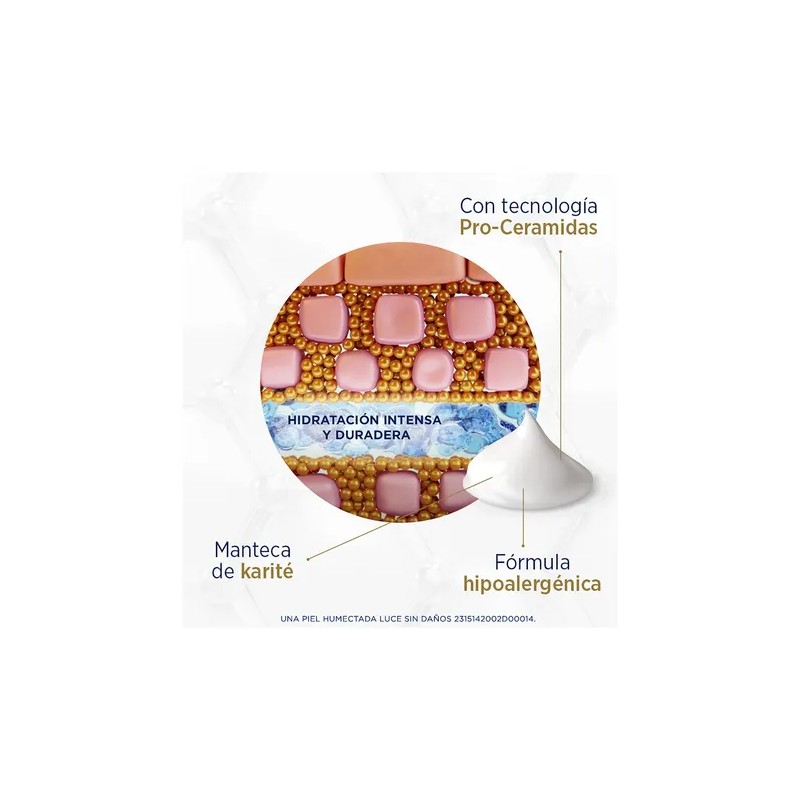 Lubriderm® Reparación Intensiva ayuda a la piel severamente deshidratada, áspera y extra seca a restaurarse y retener la humedad durante 24 horas. Está formulada con Karité (agente intensivo humectante) y minerales esenciales (Cobre, Zinc y Magnesio) que reparan y protegen la barrera de la piel, ayudándola a mantenerse saludable durante todo el día.