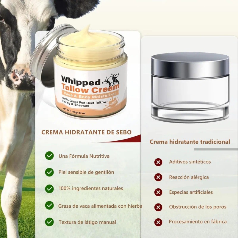 5.GRAN FUENTE DE VITAMINAS: Crema de cebo de res con bálsamo de miel el sebo es rico en vitaminas a, d, e, k, así en ácidos graso