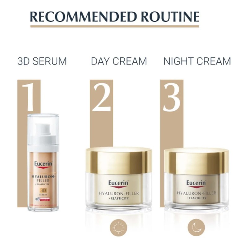 Reactiva la firmeza de tu piel madura con la Crema de Día Eucerin Filler+ Elasticity. Su fórmula con Ácido Hialurónico y Arctiin rellena arrugas y mejora la elasticidad. ✨💖