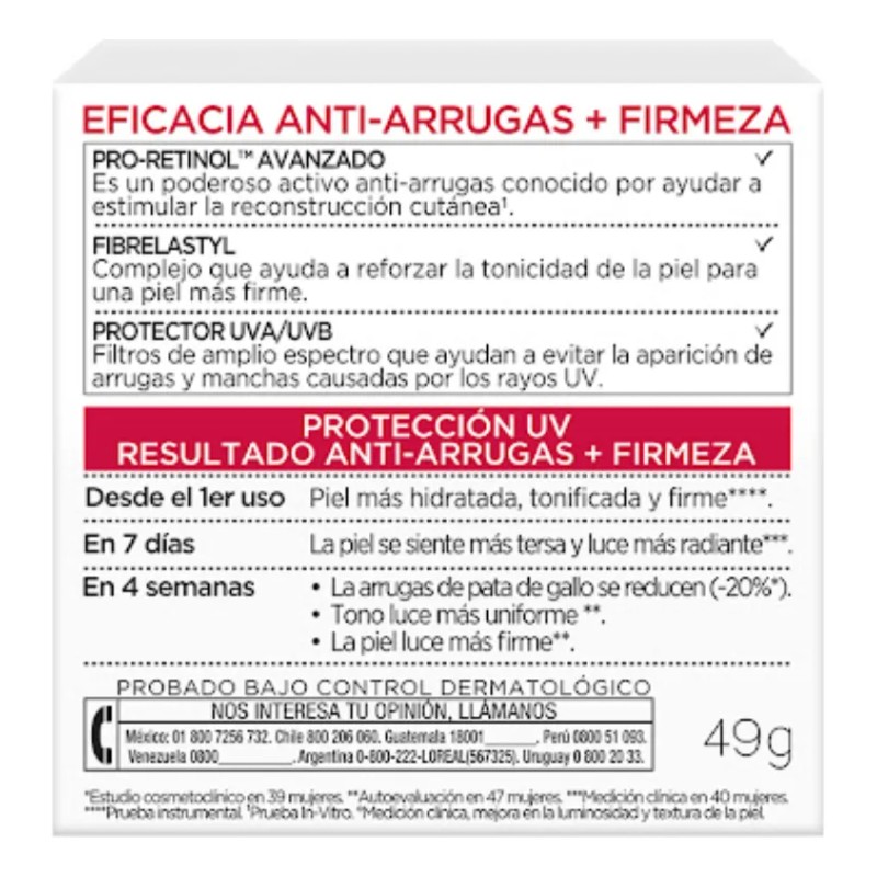 Revitalift crema de día FPS 30, enriquecida con pro retinol, proporciona hidratación intensa mientras corrige las arrugas y mejora la firmeza de la piel.