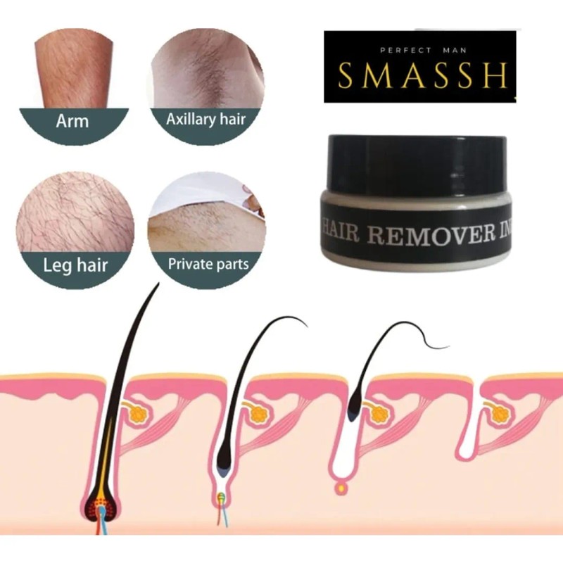 La crema depiladora para hombre de la marca Smassh es la solución perfecta para eliminar el vello grueso de manera rápida y efectiva. Esta crema ha sido dermatológicamente testeada, lo que garantiza su seguridad y eficacia en el cuidado de la piel masculina.