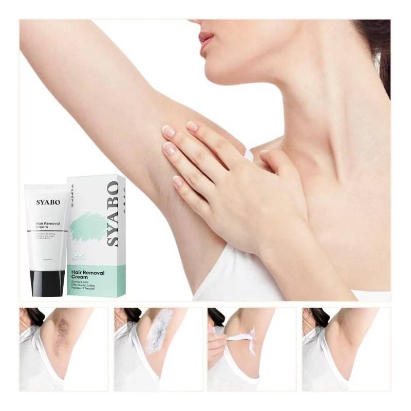 Depilación rápida e indolora: logra una depilación rápida en 8-10 minutos con la crema depilatoria SYABO La crema depilatoria SYABO cuenta con una tasa de depilación de hasta el 99.8%, lo que hace que la depilación en casa sea fácil y eficiente. Adecuado para su uso en áreas del cuerpo donde no se desea el cabello, como el área del bikini, brazos, piernas y axilas, etc. Nota: No se recomienda su uso en la cara.; Suave y suave: Formulada con extractos de Centella Asiática, nuestra crema depilatoria es suave y no irritante. No hay olor picante o desagradable durante el uso. Adecuado para todas las pieles, incluso pieles sensibles.; Supresión del cabello: Inhibe eficazmente el crecimiento del cabello con una tasa de hasta el 99,4%, reduciendo la necesidad de depilación frecuente.; Depilación limpia: Elimina el vello de la raíz sin dejar residuos, logrando una calificación de limpieza del 96,7% para la piel. No daña y es indoloro, lo que garantiza una suavidad duradera. Se recomienda utilizar aceite corporal SYABO después de la depilación para mejorar la suavidad y el brillo de la piel.; Seguro y eficaz: experimenta una depilación rápida e indolora en casa, dejando tu piel limpia y suave. En comparación con el afeitado de afeitar, nuestro producto es más seguro y reduce el riesgo de cortes y rasguños.