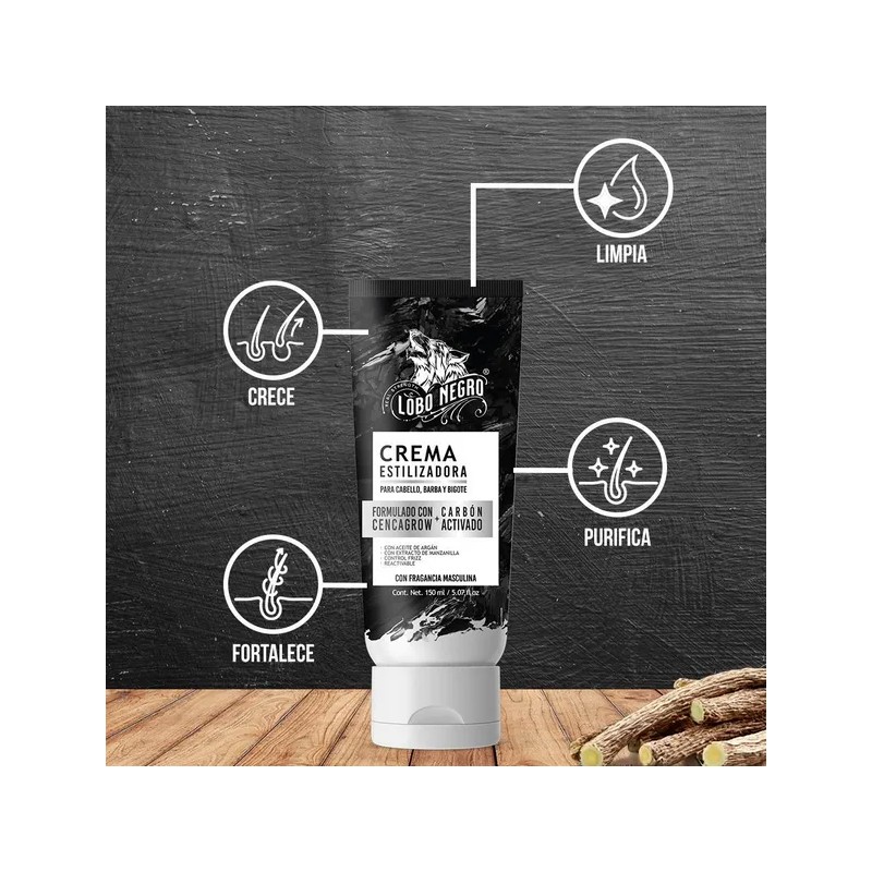 Crema Estilizadora Para Cabello Y Bigote Lobo Negro 150ml