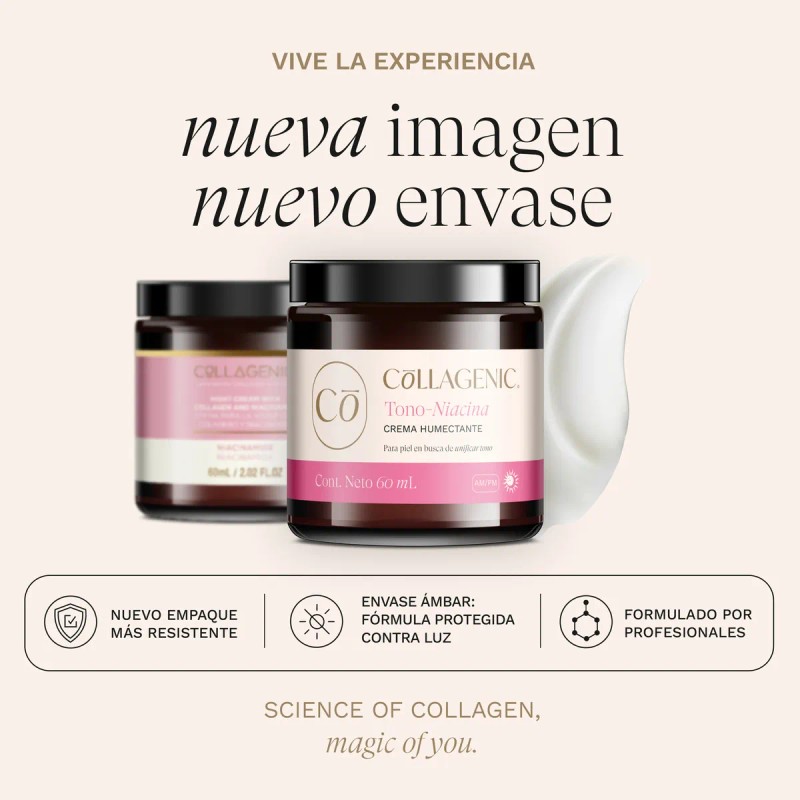 • Parte de una Rutina Integral: Para mejores resultados, se recomienda usar dentro de la rutina de Skincare Collagenic, complementando con productos como el Gel Limpiador Facial, el Tónico Facial, la Crema Contorno de Ojos y el Suero Facial adecuado a tus necesidades.