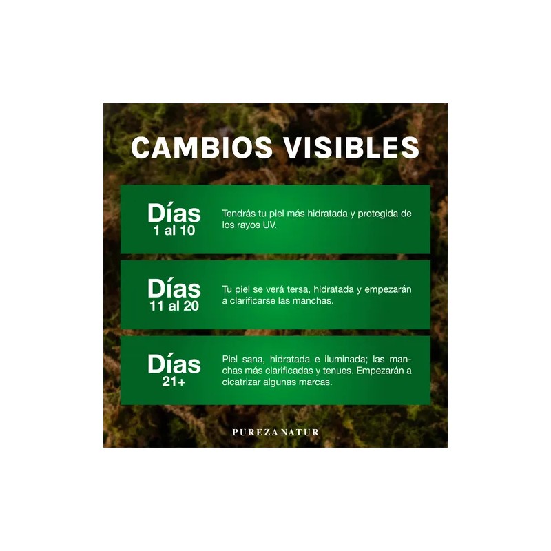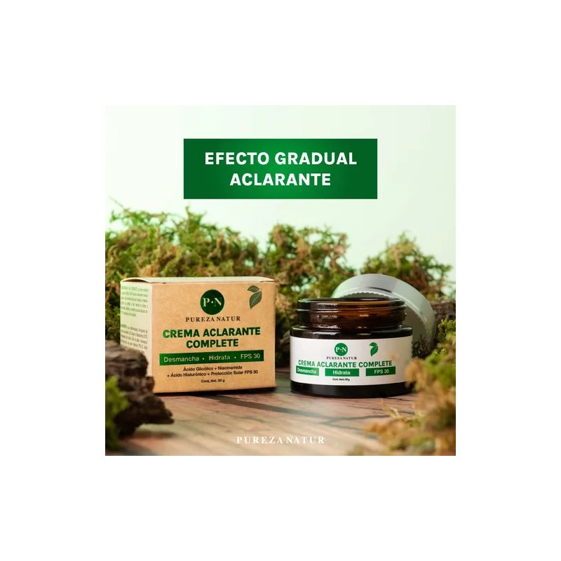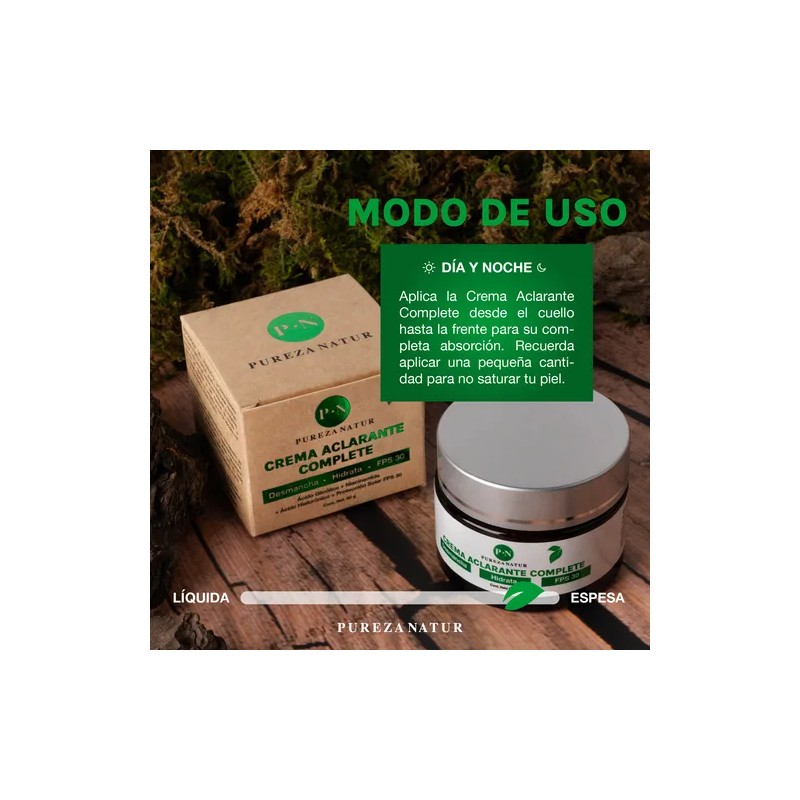 CONTENIDO: Cada una de las cremas antimanchas Pureza Natur crean un efecto reparador, antiarrugas, regenerador y aclarante, para devolverle forma y firmeza a la piel, ojos y manos en las áreas afectadas por pecas, ojeras, líneas de expresión, bolsas.