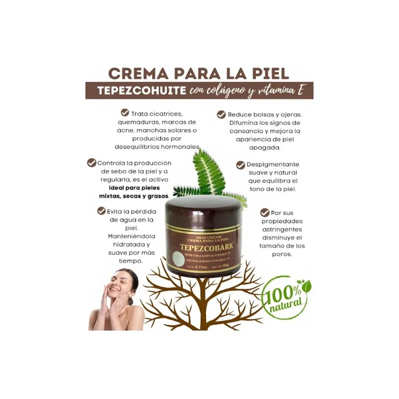 Crema Facial Con Colágeno, Vit E Y Tepezcohuite Tepezcobark