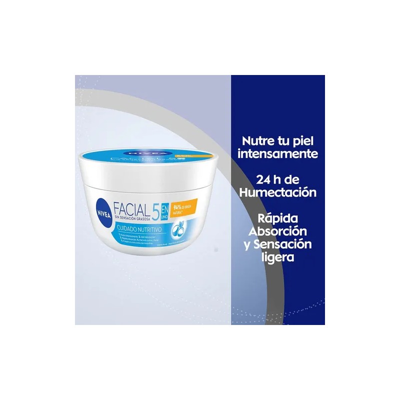 Con Nivea 5 en 1 Cuidado Nutritivo, nutre tu piel y disfruta de una apariencia radiante y saludable día tras día.