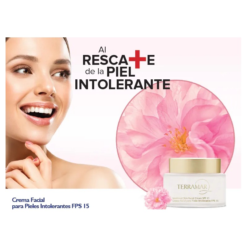 ¡Dale a tu piel sensible el amor y la protección que necesita! Con la Crema Facial para Pieles Intolerantes FPS 15 de Terramar, tu rostro estará calmado, protegido y visiblemente más sano cada día. 🌟💚