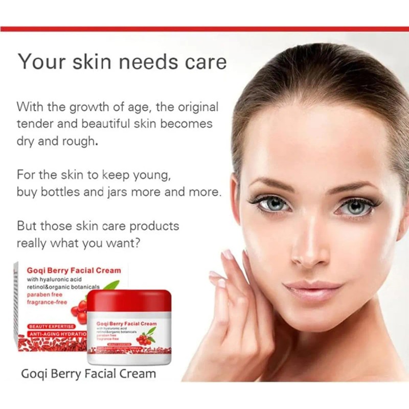 Crema facial de goji, antioxidante, mejora el tono, aumenta el metabolismo celular, mantiene la juventud Hidratante, antienvejecimiento, crema reafirmante de bayas de Goji,