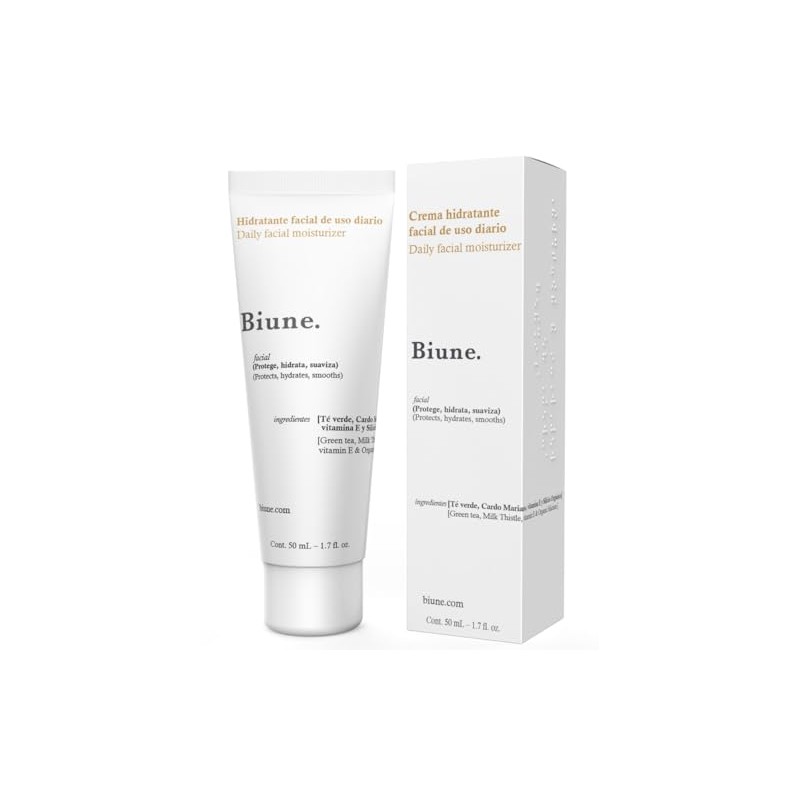 🌟 ⭐ Crema Hidratante Facial de Día | Con Té Verde, Silicio Orgánico y Vitamina E | Hidratación Intensa - Antiarrugas | Fórmula Vegana con Acción Antimanchas para Todo tipo de Pieles | Biune. | 50 ml ⭐ 🌟