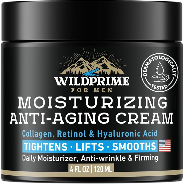 Crema hidratante facial para hombre, antienvejecimiento y arrugas, fabricada en Estados Unidos, colgeno, cido hialurnico, vitaminas E y A, aceite de