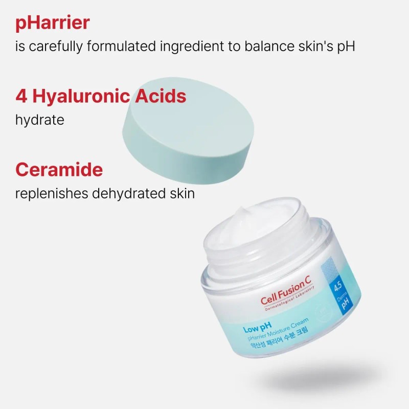 La crema humectante de Cell Fusion C con pH bajo está diseñada para mantener el equilibrio natural de la piel. Su fórmula ligera e hidratante es ideal para uso diario, fortaleciendo la barrera cutánea y calmando la piel sensible o irritad