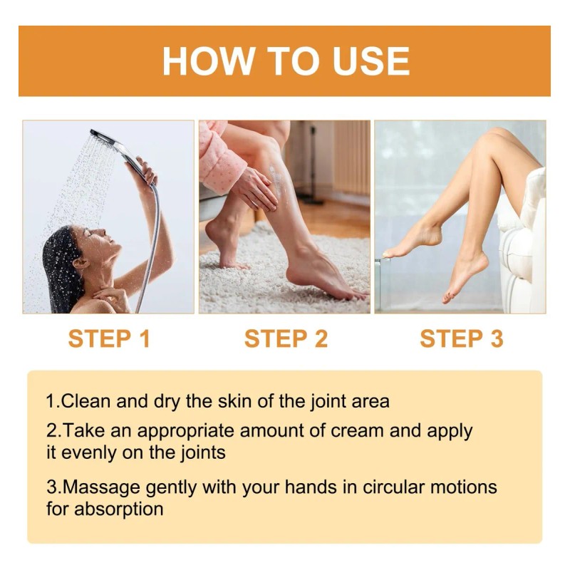3.Rápida absorción:La piel absorbe rápidamente la Crema Terapéutica para Articulaciones y Huesos de Bee Venom, llevando los ingredientes activos directamente a la zona afectada para un confort inmediato.