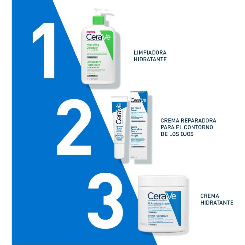 La Crema hidratante CeraVe incluye 3 ceramidas esenciales y Ácido Hialurónico para hidratar eficazmente la piel y restaurar la barrera protectora. Desarrollada con dermatólogos, esta crema cuenta con la Tecnología patentada MVE que mantiene la piel hidratada durante 24 horas. No es grasosa y es de rápida absorción, Apta para piel seca a muy seca, piel irritada, con comezón, psoriasis o dermatitis atópica.