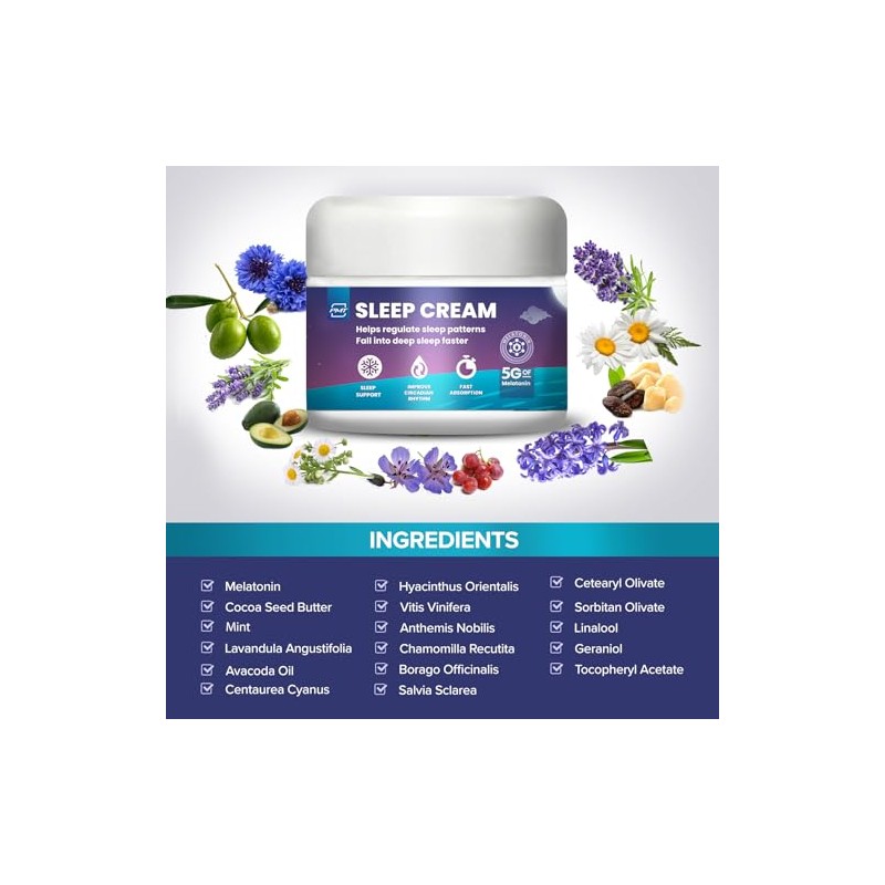 Crema para dormir de PMT, ayuda natural para dormir regula los patrones de sueño para conciliar el sueño más rápido, utiliza ingredientes naturales melatonina y lavanda, mejora el ritmo circadiano
