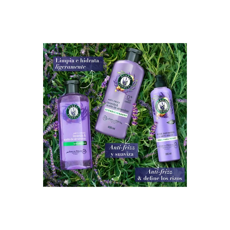 Controla el frizz y define tus rizos con la Crema para Peinar con Lavanda y Aceite de Almendras de Herbal Essences.