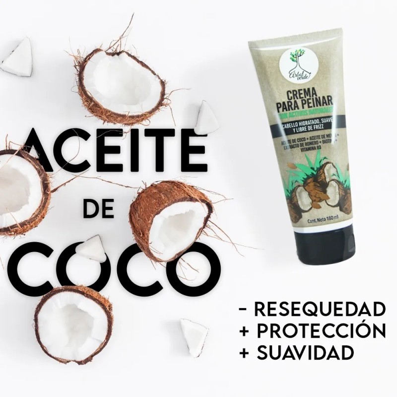 Disfruta de una hidratación profunda con la Crema Para Peinar Árbol Verde Anti Nudos con Biotina. Ideal para cabello rizado, esta crema en presentación de 180ml nutre, desenreda y suaviza tu cabello sin necesidad de enjuague. Su fórmula libre de sulfatos, parabenos y gluten es hipoalergénica, cuidando tu salud capilar y dejando una delicada fragancia a coco. Perfecta para aplicar sobre cabello húmedo, esta crema ayuda a mantener tu melena hidratada y libre de nudos, facilitando el peinado diario. Además, el envase en tubo es práctico para llevar y usar en cualquier momento.