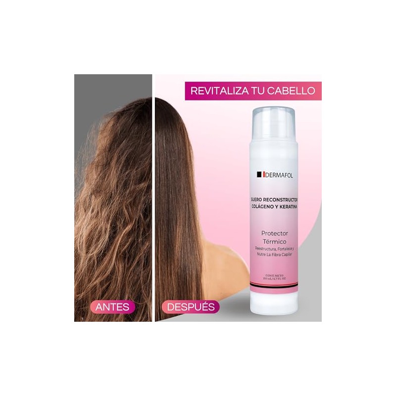 🌟 ⭐ Crema para Peinar Protector de Calor para Cabello, Suero Reconstructor Capilar con Colágeno y Keratina Anti Frizz, Brillo y Suavidad Serum Profesional, para Cabello Dañado PROTECTOR TÉRMICO | Dermafol ⭐ 🌟